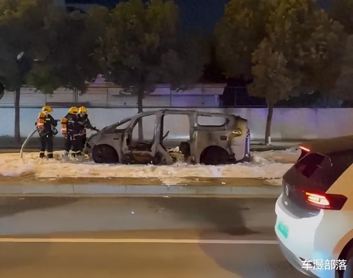 最近漫哥潜水的汽车群,一条某品牌纯电MPV起火燃烧的视频又传爆了。从视频可以看到车辆底盘突然闪了一下,然后掉出几颗火星,再然后不到10秒的时间内火苗已开始包围车辆,30秒内全车已经熊熊大火。而从另一条消防将火扑灭后的视频来看,这辆售价50万打上的豪华MPV只剩下车架。
